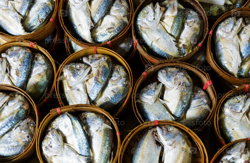 Рыбы в бочках для продажи на рынке в Бангкоке
