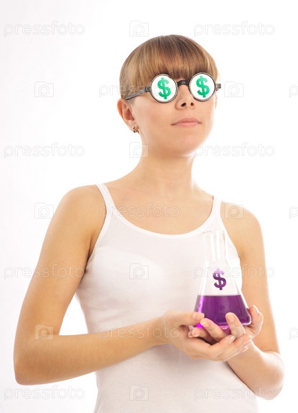 Девушка с атрибутами с символом евро