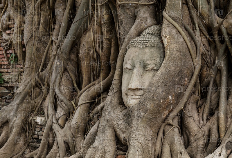 Голова Будды в дереве