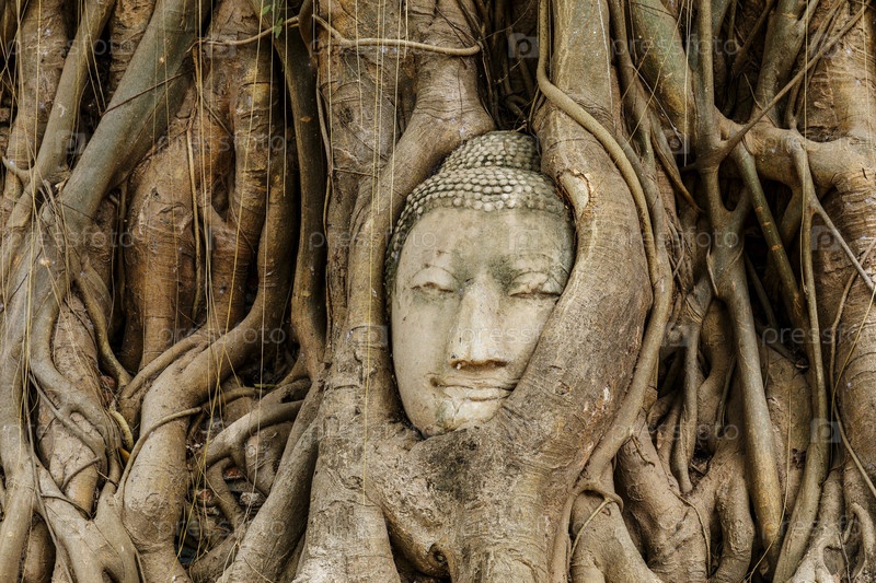 Голова Будды в дереве
