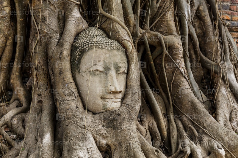 Голова статуи Будды в дереве в Аюттхая
