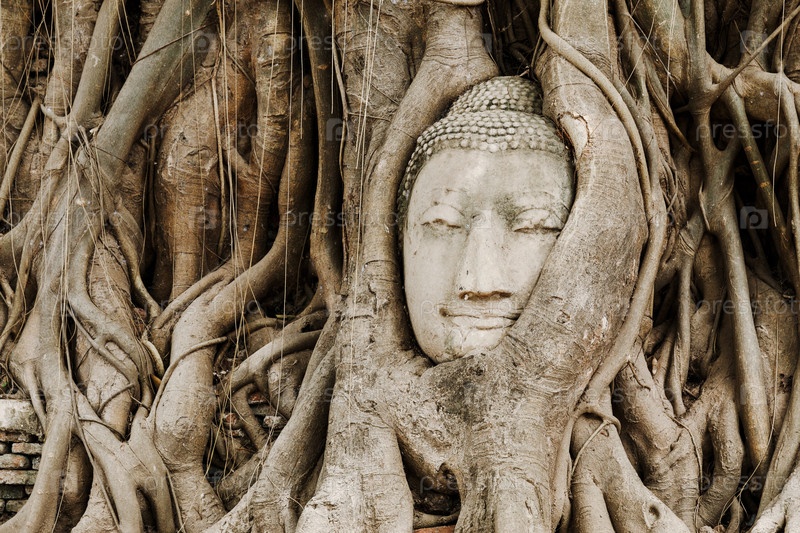 Голова статуи Будды в дереве в Аюттхая