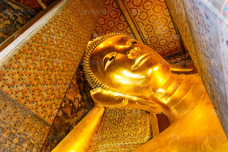 Золотая статуя лежащего Будды. Храм лежащего Будды