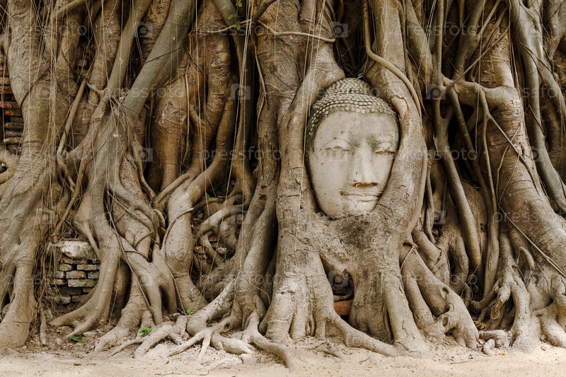 Голова Будды в старом дереве в Аюттхая