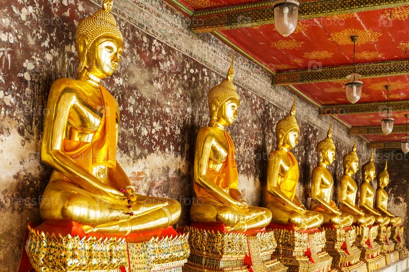 Золотые статуи Будды в ряд