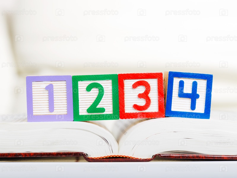 Кубики с цифрами 1,2,3,4 на открытой книге