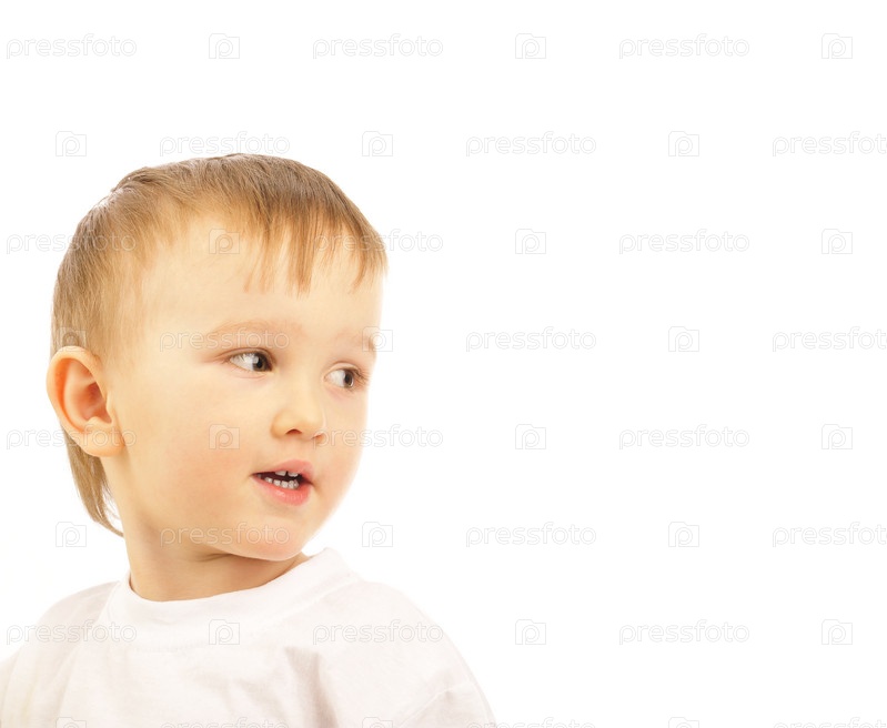 Портрет симпатичного маленького мальчика на белом фоне