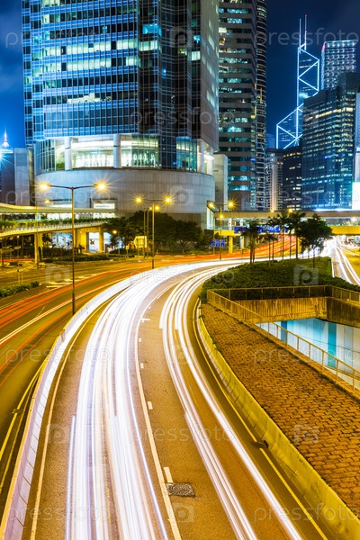 Оживленное движение в Гонконге ночью