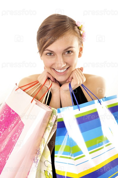 Молодая счастливая женщина с пакетами для покупок