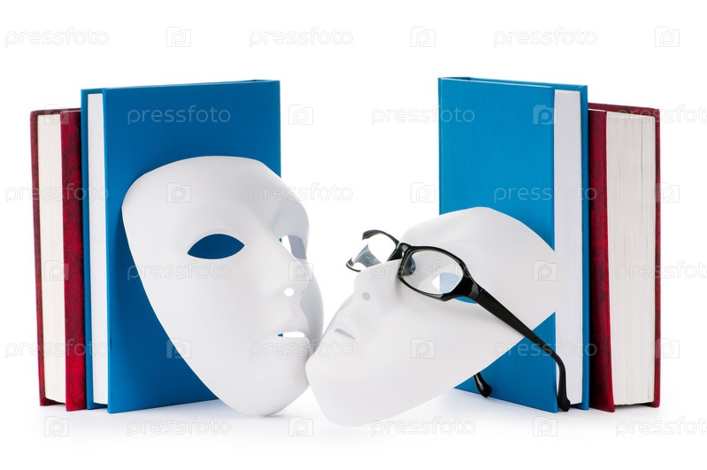 Книги и маски на белом фоне