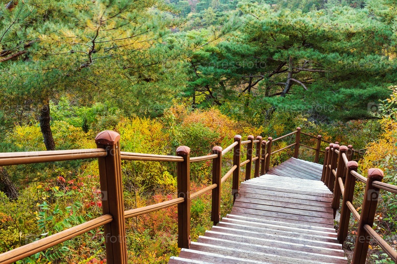 Деревянная дорожка для пеших прогулок в горах