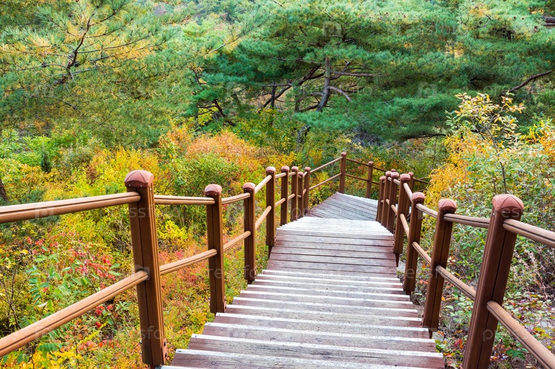Деревянная дорожка для пеших прогулок в горах