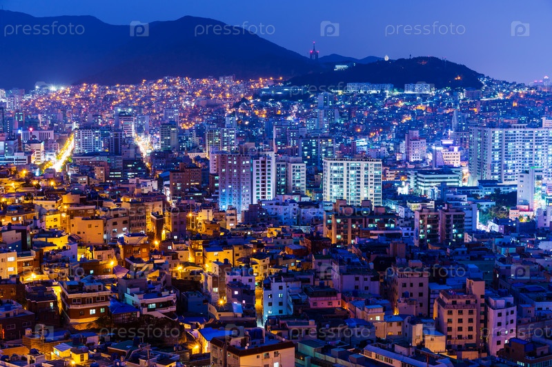 Город Пусан в Южной Корее ночью