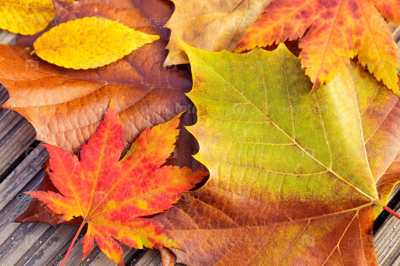 Осенние листья клена на деревянном фоне