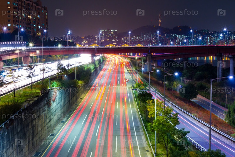 Движение в городе Сеул ночью