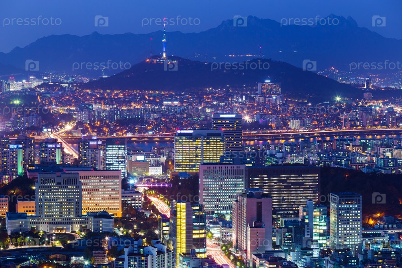 Город Сеул в ночное время