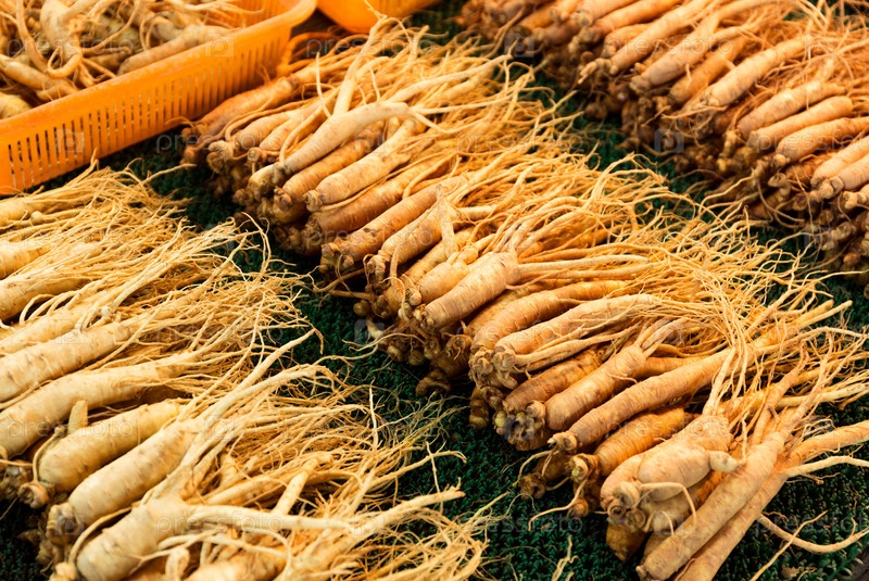 Свежий женьшень на корейском продовольственном рынке