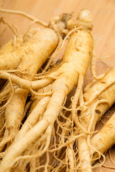 Женьшень нас деревянном фоне