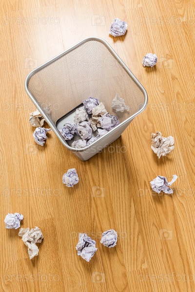 Мусорное ведро и скомканная бумага