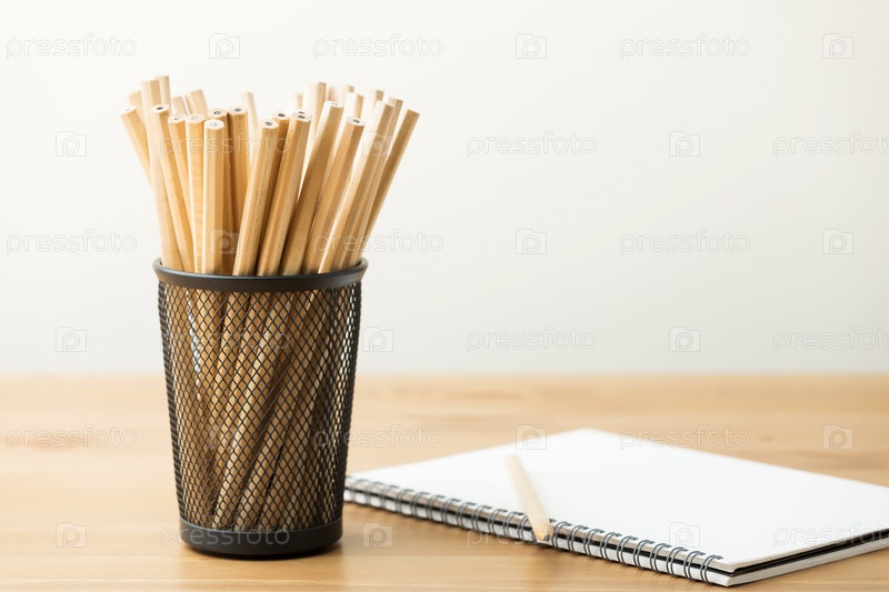 Карандаши в стаканчике и блокнот