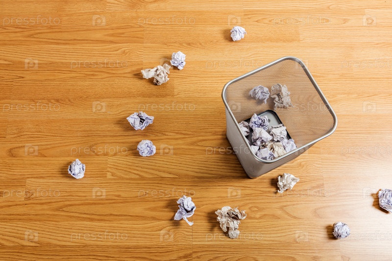 Мятая бумага и корзина для мусора