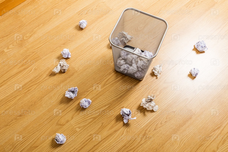 Мятая бумага и корзина для мусора