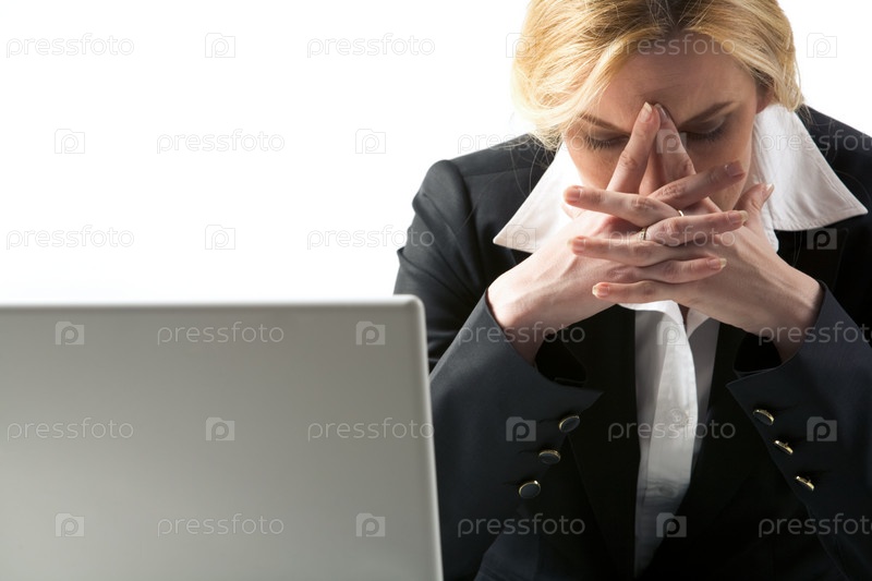 Фото депрессивной женщины, беспокоящейся о проблемах в бизнесе