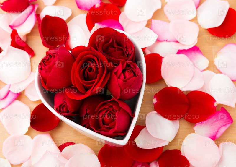 Розы в чашке в форме сердца