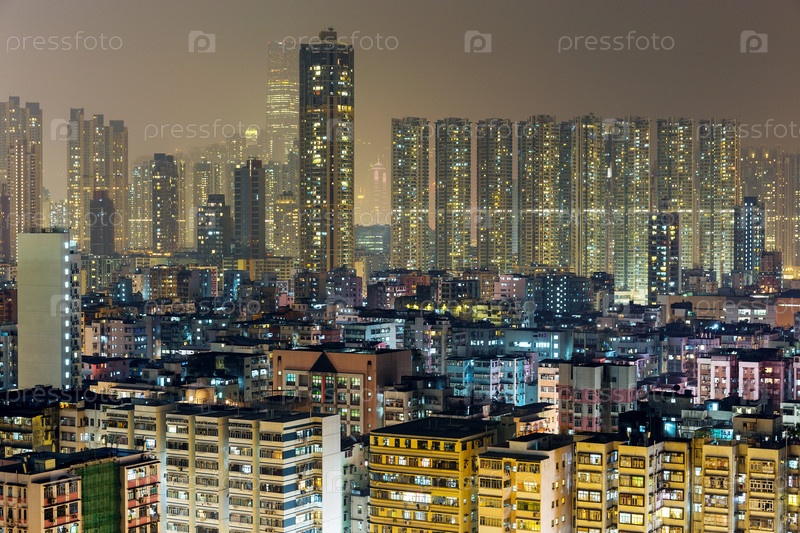 Жилой дом в Гонконге ночью