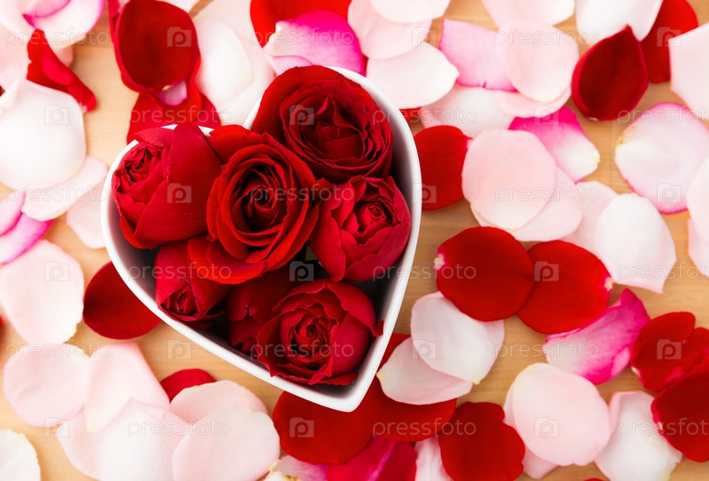 Красные розы и лепестки