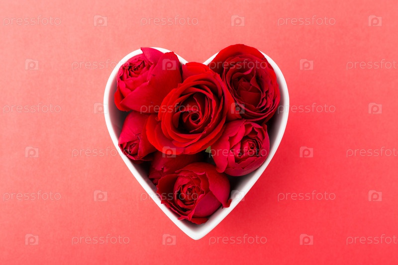 Розы в форме в виде сердца на красном фоне