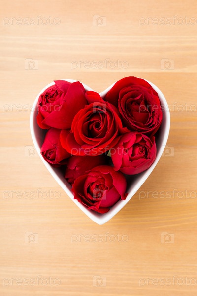 Красные розы в чашке в форме сердца