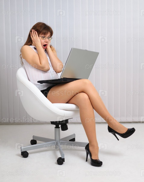 Женщина в ужасе смотрит на экран ноутбука
