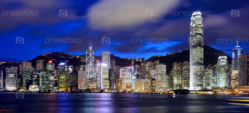 Гонконг и гавань Виктория в ночное время