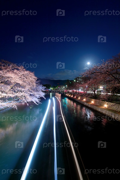 Канал Бива и цветущие сакуры на берегу