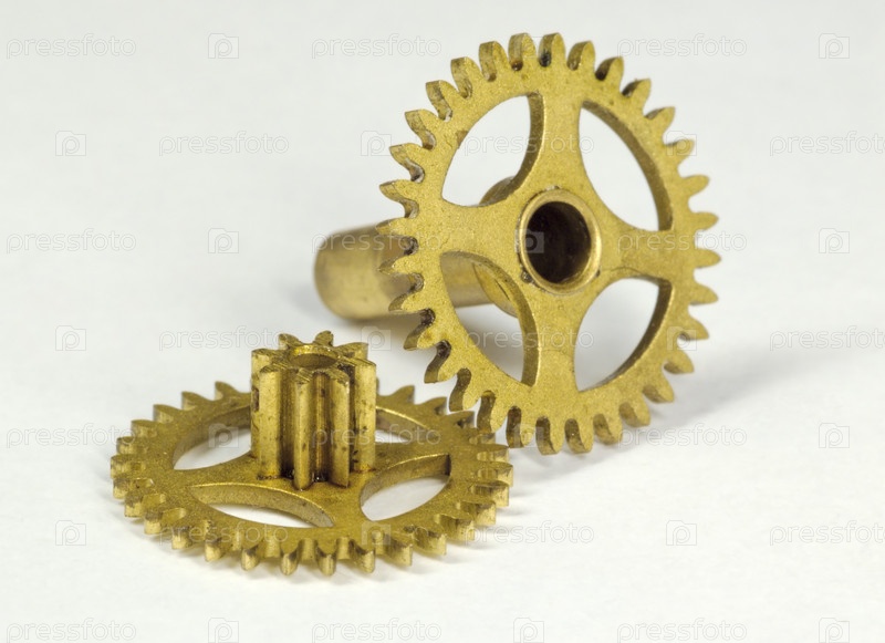 Два колеса от часового механизма на сером фоне