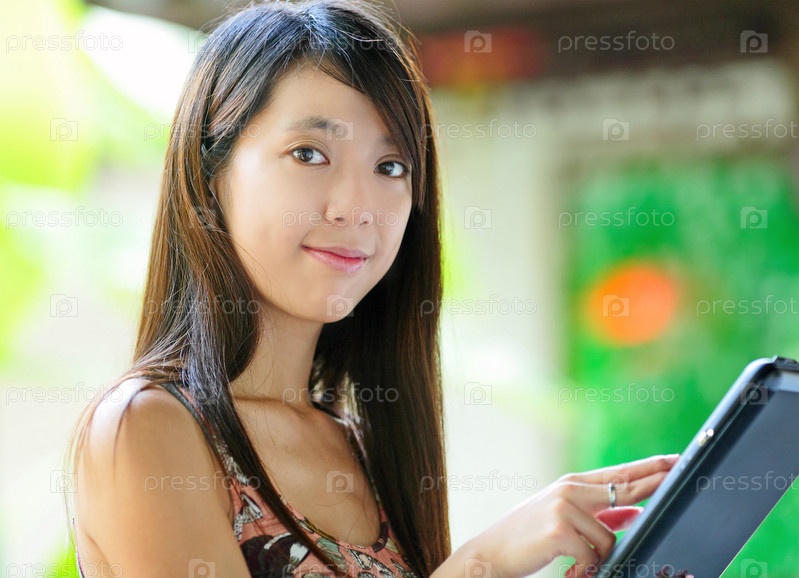 Молодая женщина с планшетным компьютером