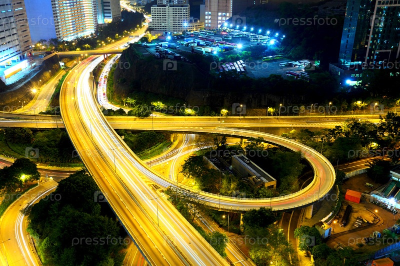 Шоссе ночью в современном городе