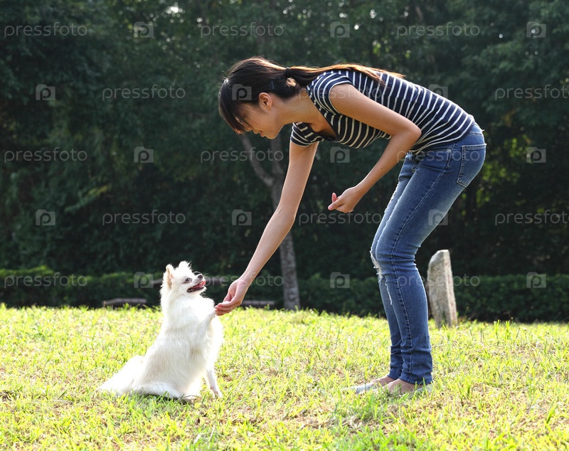 Женщина дрессирует собаку