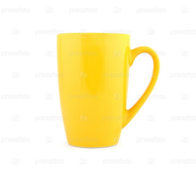 Пустая желтая кружка на белом фоне