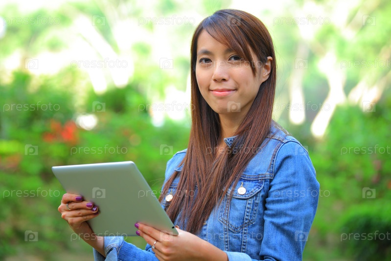 Молодая азиатская женщина с планшетом