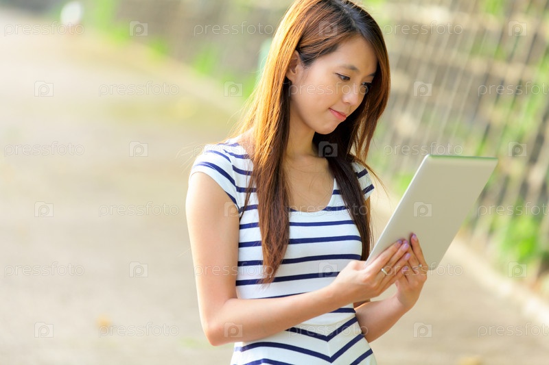 Молодая женщина с планшетным компьютером