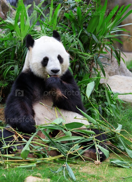 Гигантская панда ест бамбук