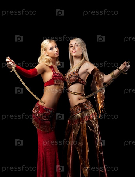 Две танцовщицы в арабских костюмах с саблями