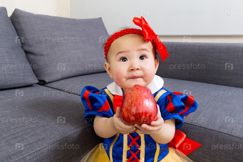 Азиатская девочка с красным яблоком