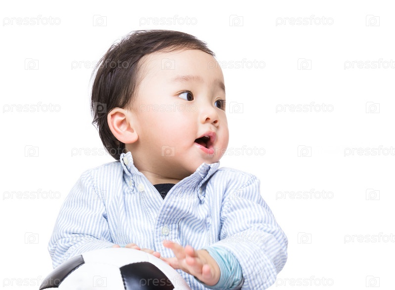 Азиатский мальчик с футбольным мячом
