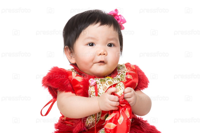 Китайская девочка держит сумочку