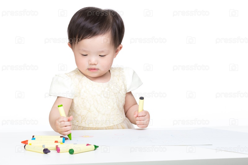 Азиатская девочка сосредоточена на рисовании