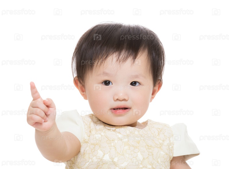 Азиатская девочка указывает на что-то