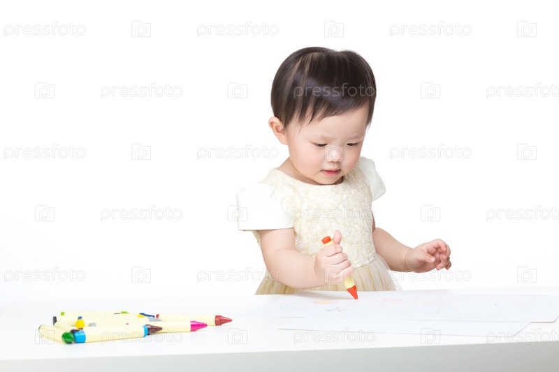 Азиатская девочка сосредоточена на рисовании